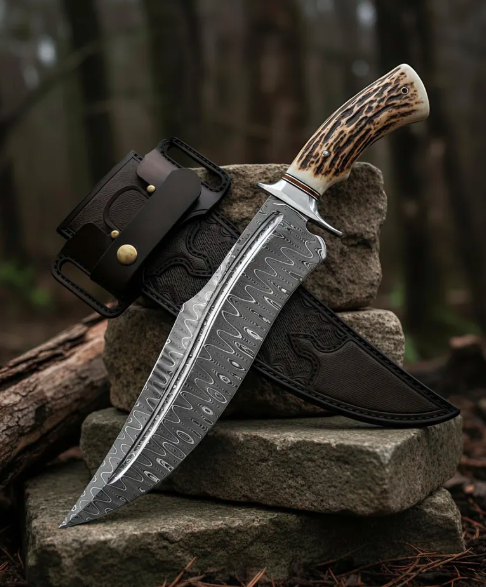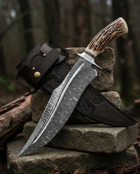 Note: Since each knife is handmade, the exact Damascus pattern and stag handle texture may vary slightly, making your piece truly one-of-a-kind.