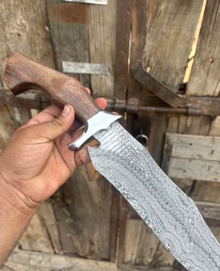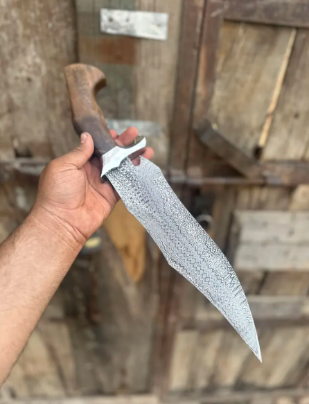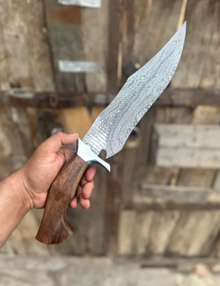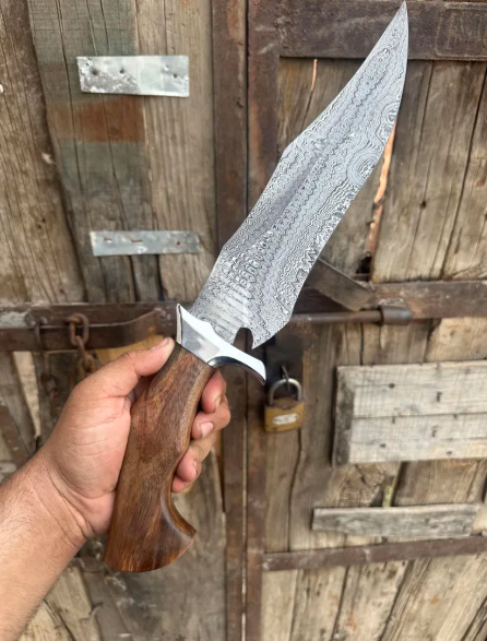 This isn’t just a knife—it’s a story. Hand-forged from high-carbon 1085 and 15N20 Damascus steel, this full-tang Bowie-style blade blends old-world craftsmanship with modern functionality. Whether you’re a hunter, outdoor enthusiast, or collector, this knife is built to perform—and made to impress.